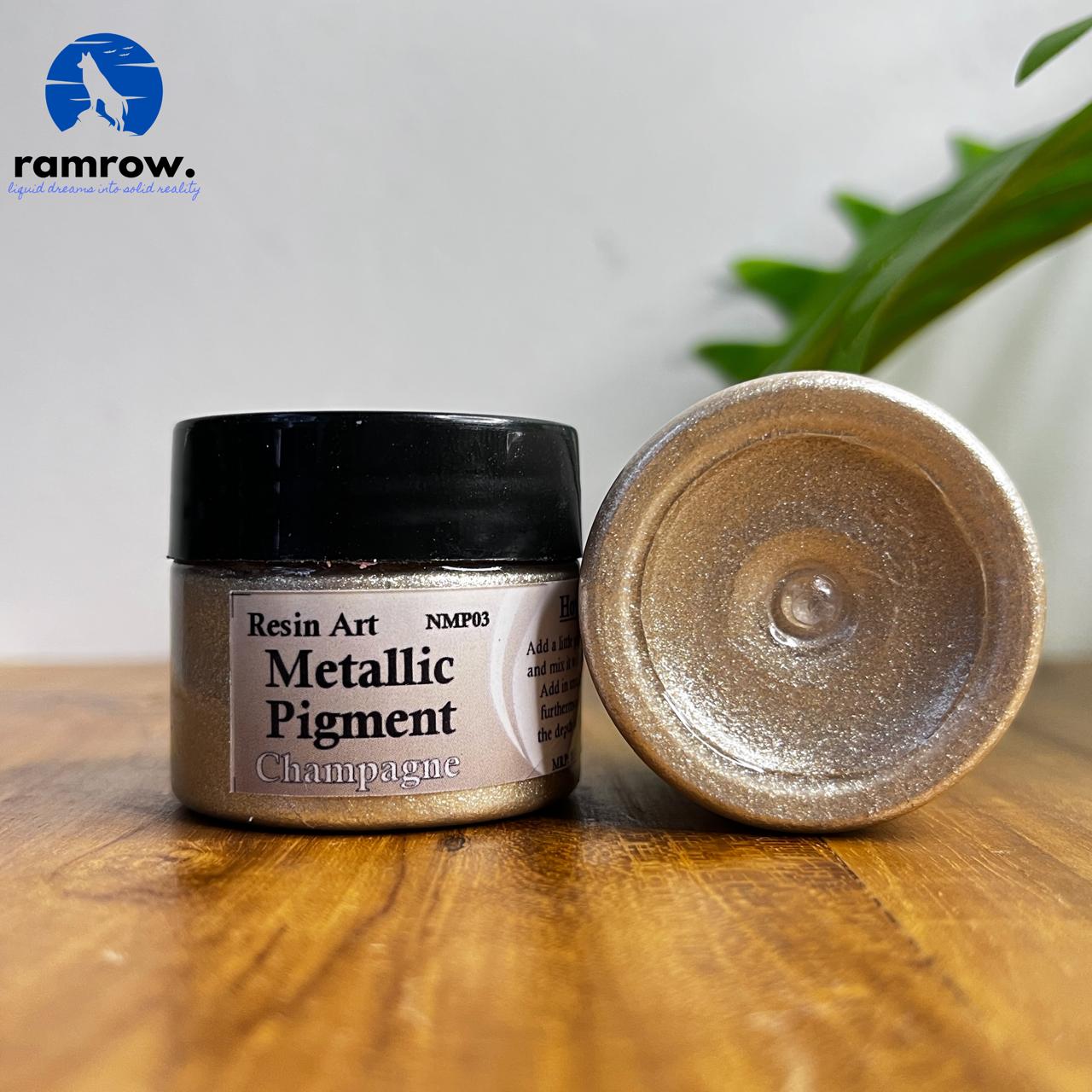 Champagne metallic pigment paste specially formulated for resin art and epoxy projects. This ready-to-use paste blends smoothly into resin, delivering a soft champagne-gold metallic shimmer with elegant depth. Highly concentrated for excellent coverage, 20 gm is sufficient for multiple resin artworks, perfect for swirls, marble effects, and layered designs.